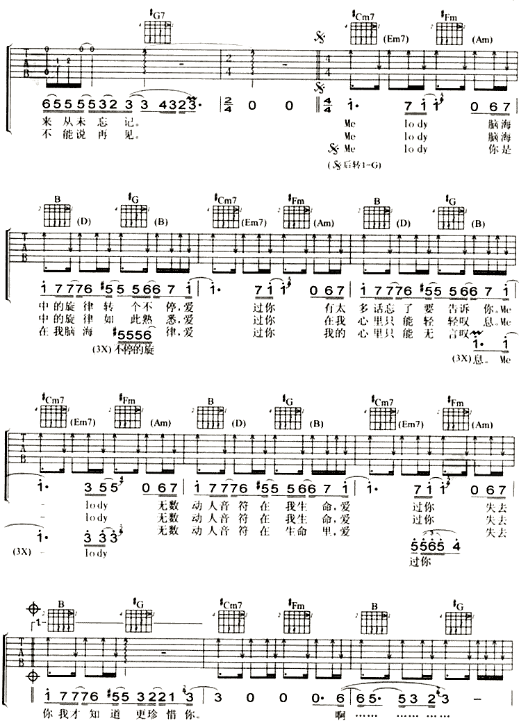 琴谱网为您精心推荐 Melody 高清图谱