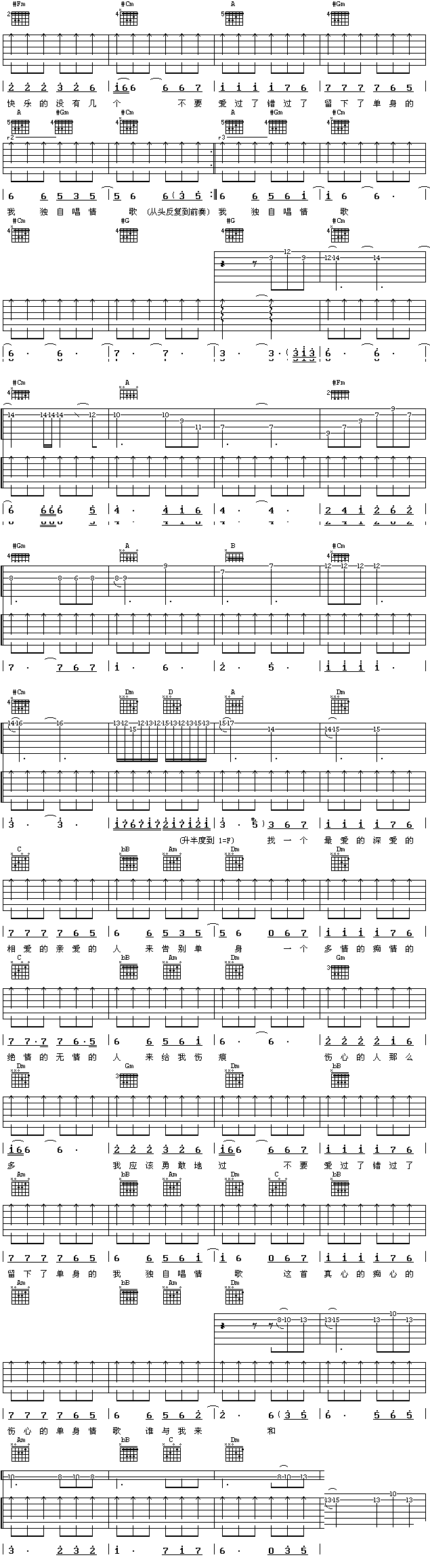 当前位置:琴谱网>吉他弹唱>单身情歌