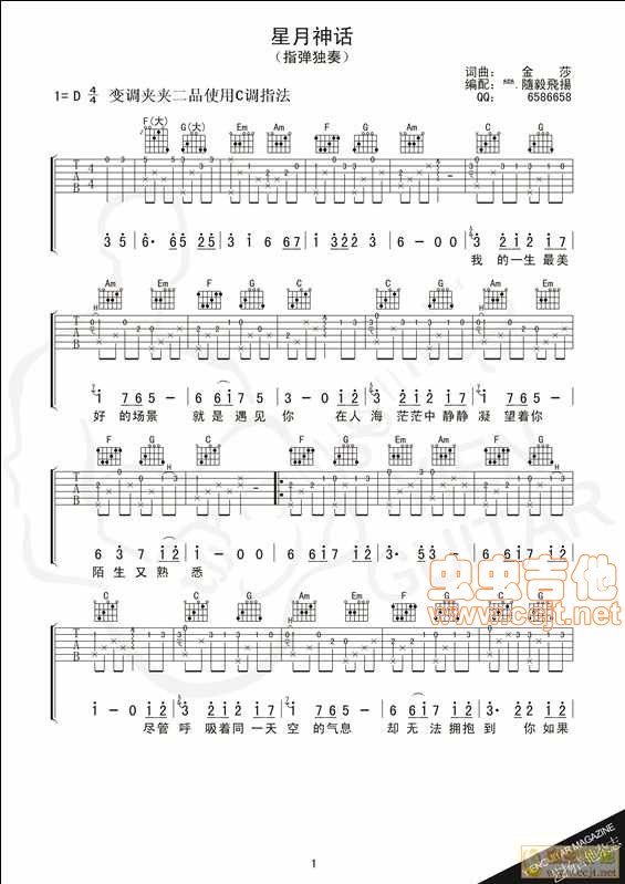 曲谱介绍: 《星月神话》吉他弹唱谱,共有2张高清图谱,免翻页排版设计。