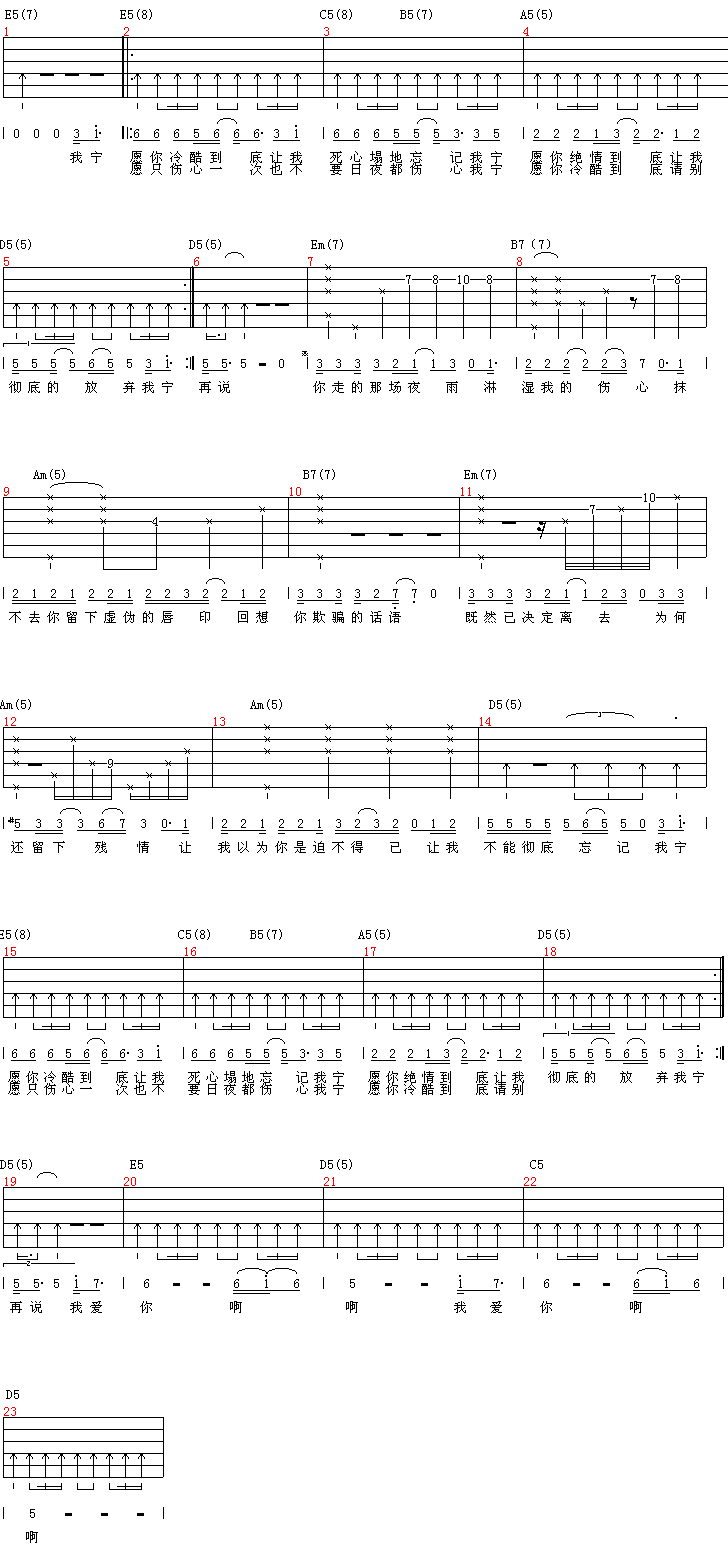 冷酷到底吉他谱 - 吉他弹唱谱
