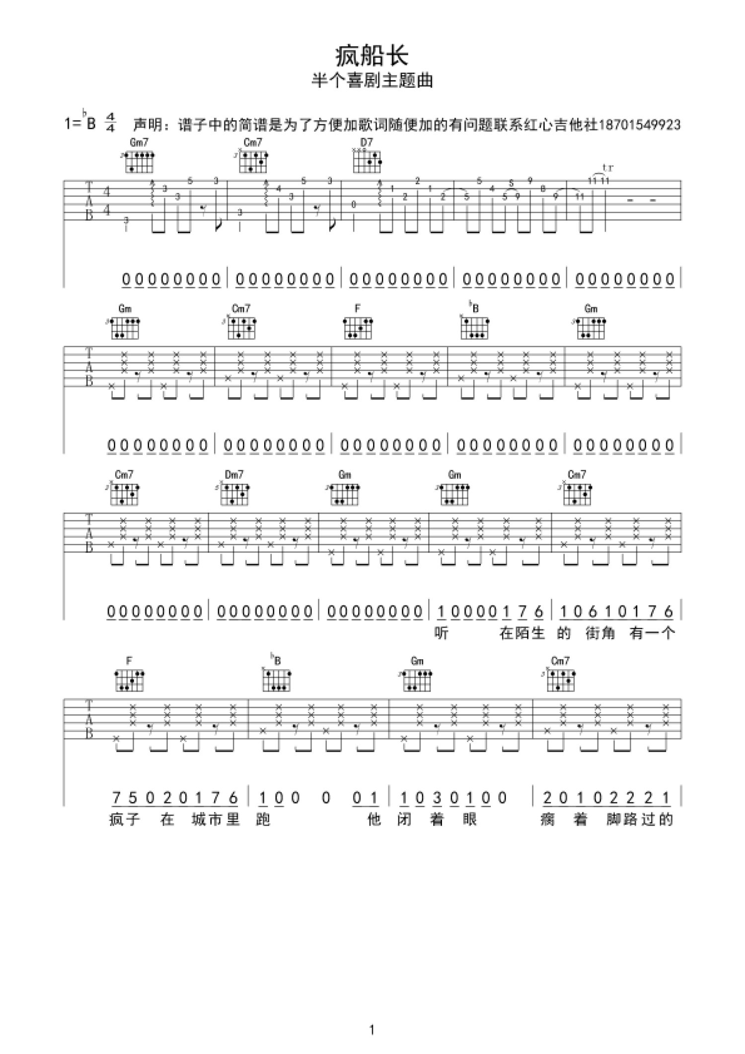 疯船长吉他谱 - 吴昱翰/艾伦/王成思/黄才伦/杜晓宇 - 吉他弹唱谱