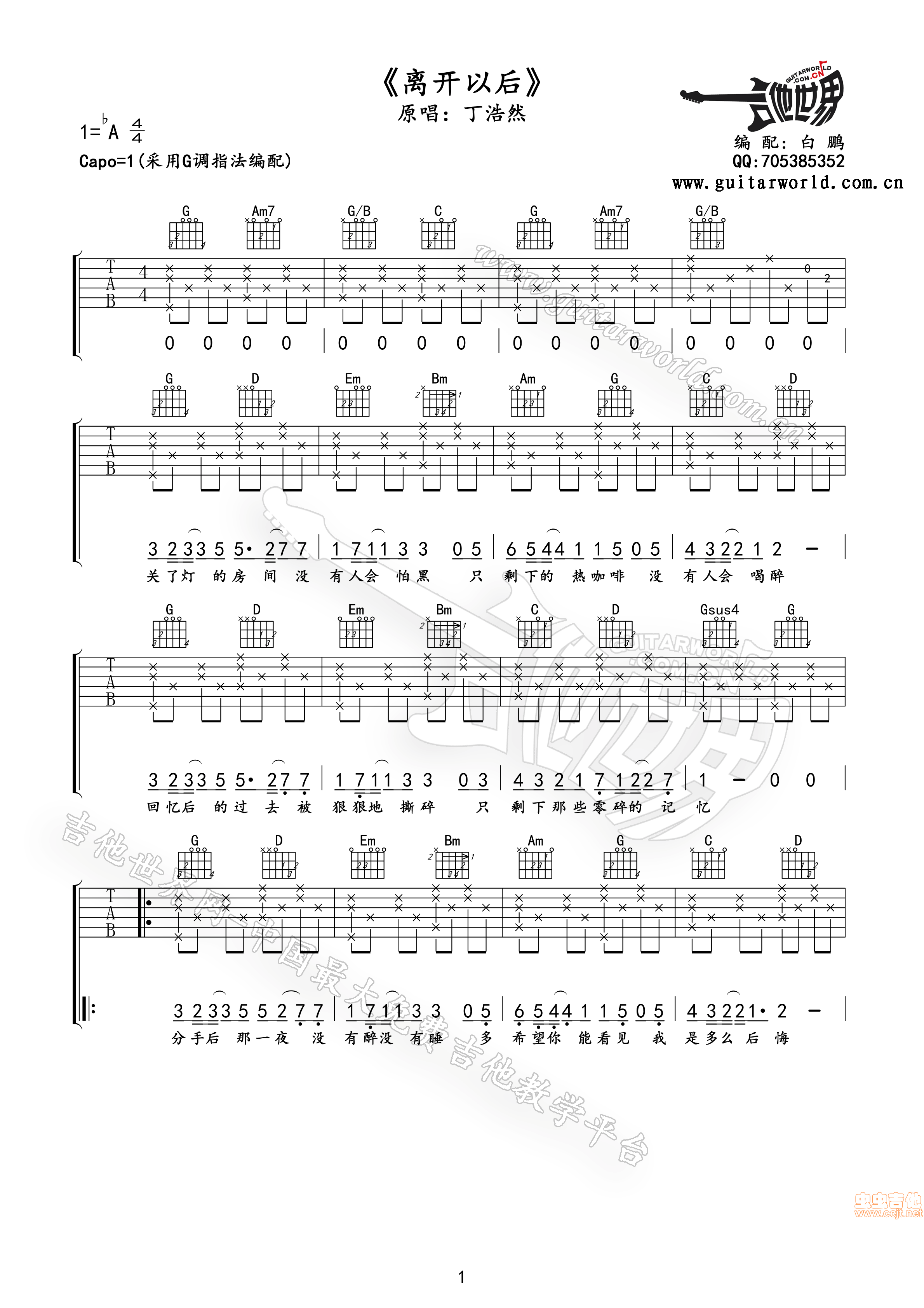 离开以后吉他谱 - 吉他弹唱谱 - 原版