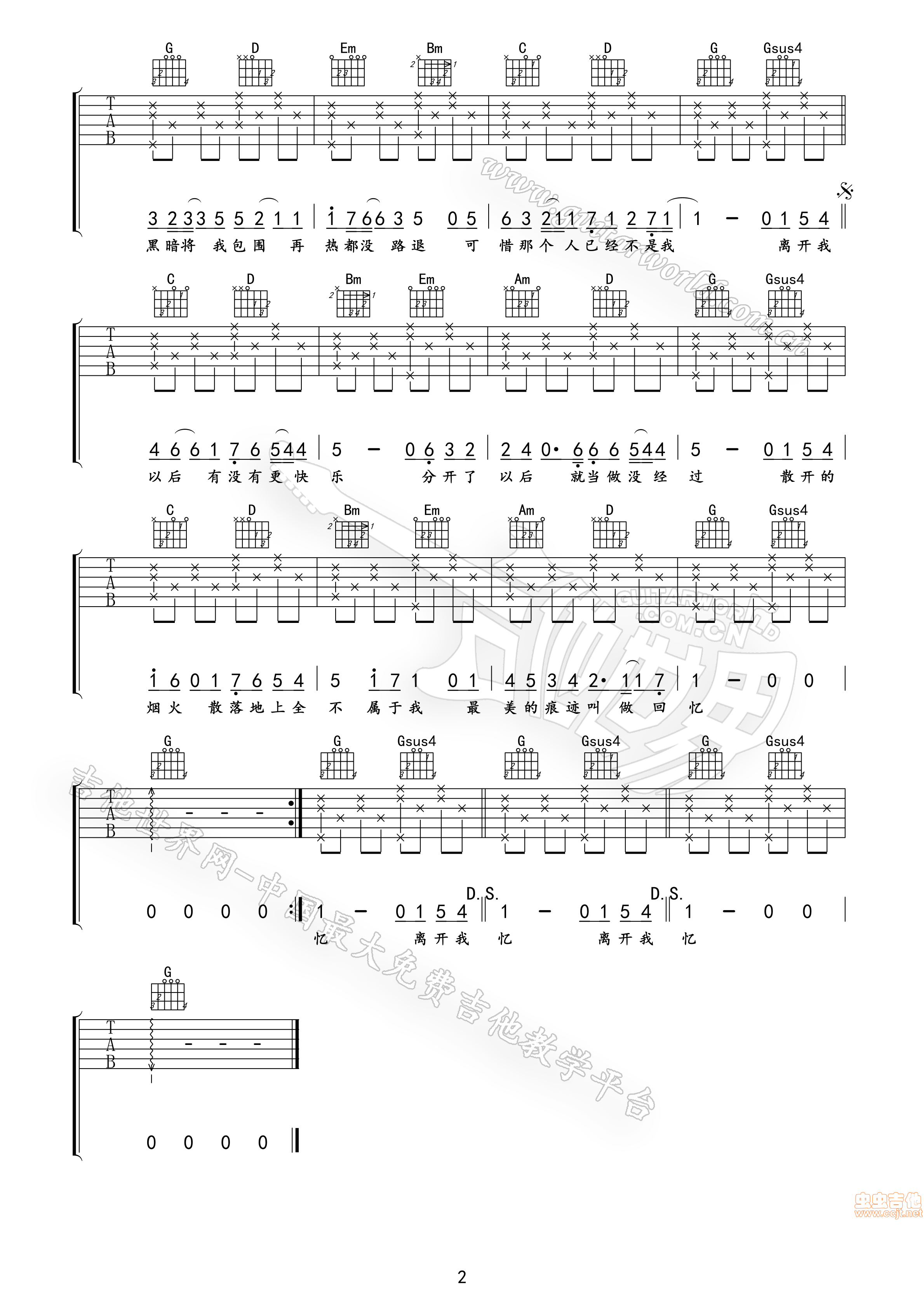 当前位置:琴谱网>吉他弹唱>离开以后