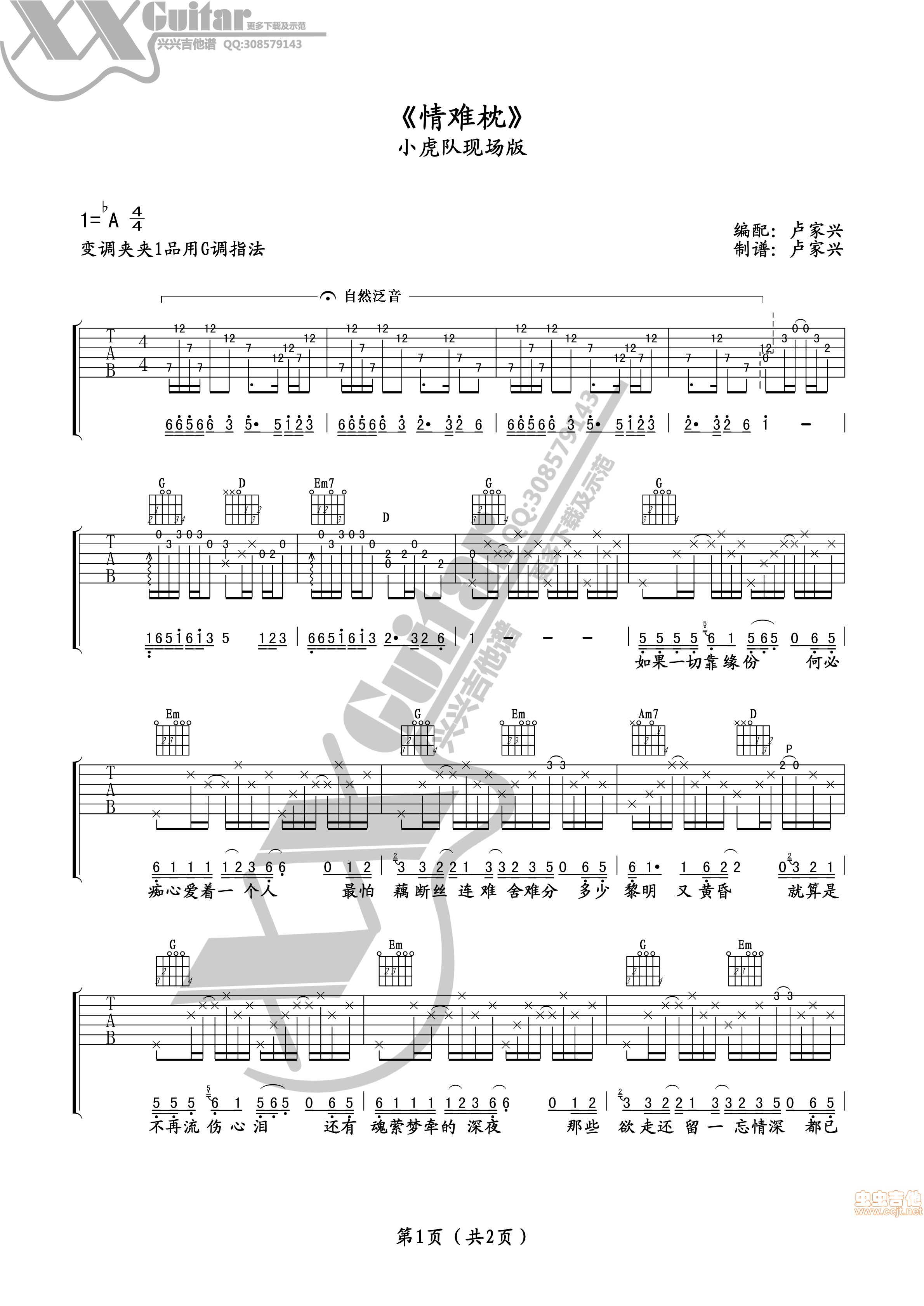 曲谱介绍: 《情难枕》吉他弹唱谱,共有2张高清图谱,免翻页排版设计。