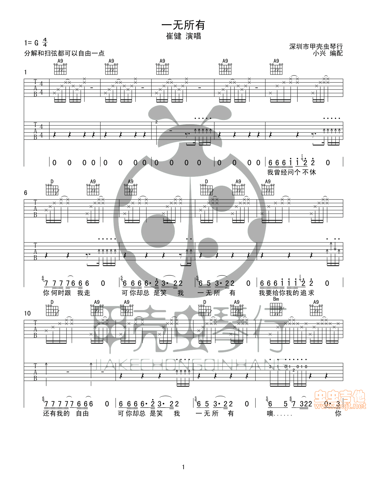 一无所有(双吉他+贝司吉他谱 - 吉他弹唱谱