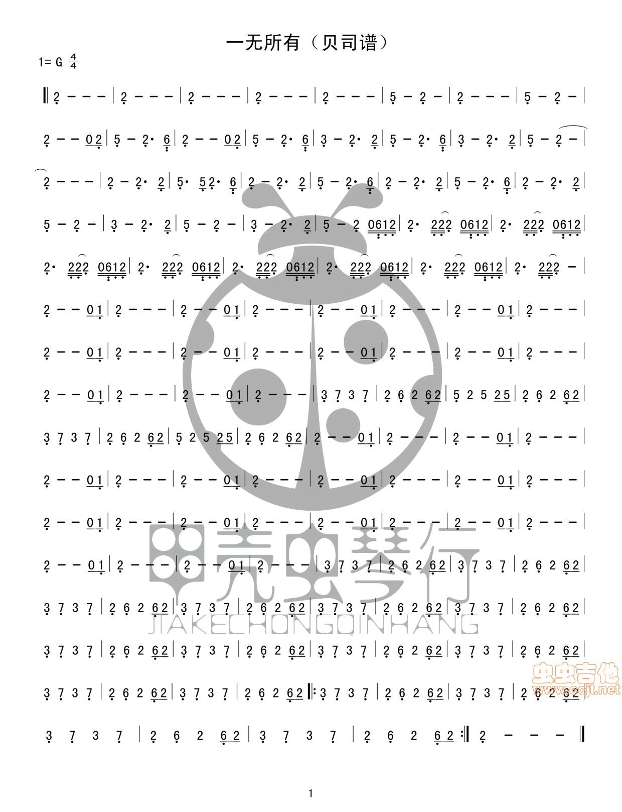 曲谱介绍: 《一无所有(双吉他+贝司》吉他弹唱谱,共有9张高清图谱。