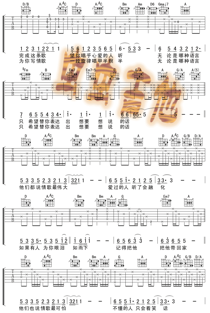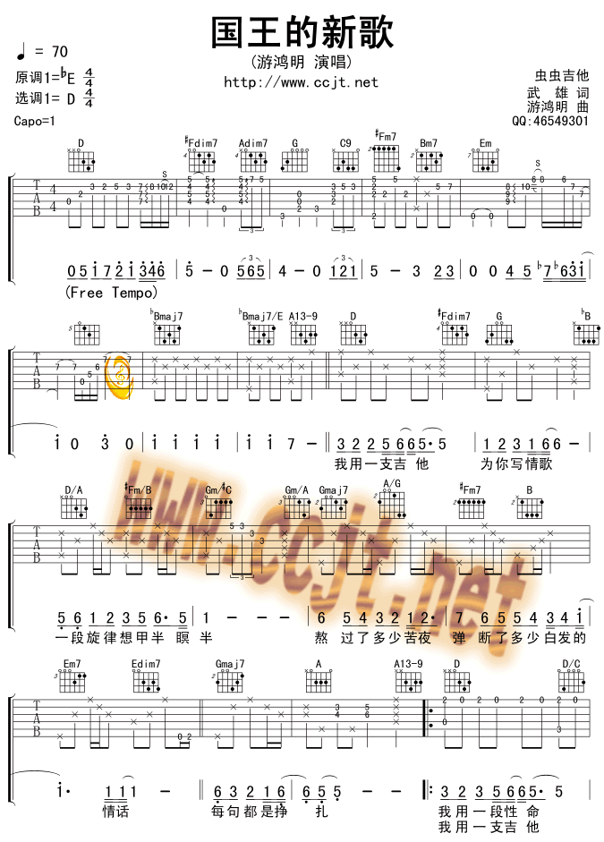 当前位置:琴谱网>吉他弹唱>国王的新歌(版本一)