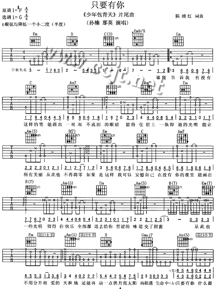 只要有你吉他谱 - 吉他弹唱谱