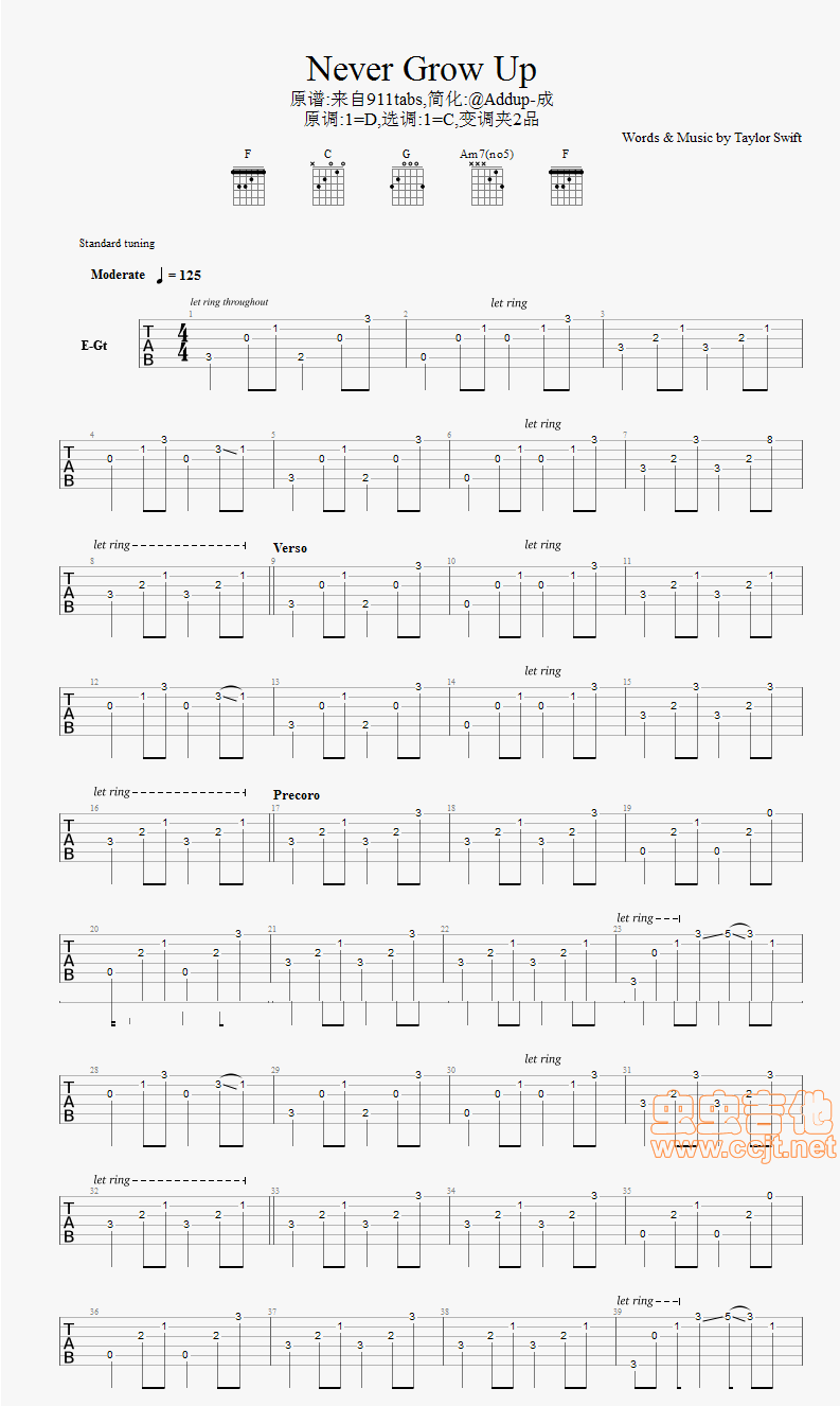 Never Grow Up吉他谱 - Never - C调吉他弹唱谱