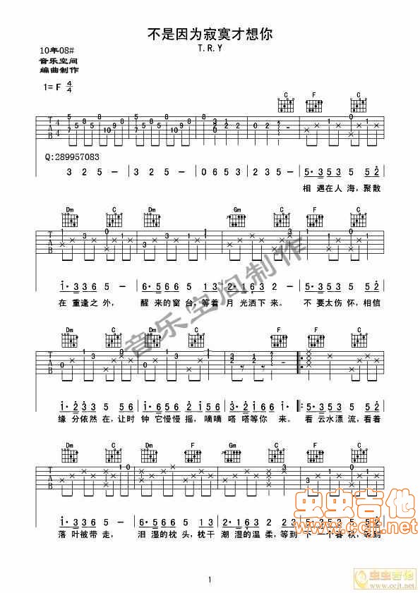 曲谱介绍: 《不是因为寂寞才想你》吉他弹唱谱,共有3张高清图谱。