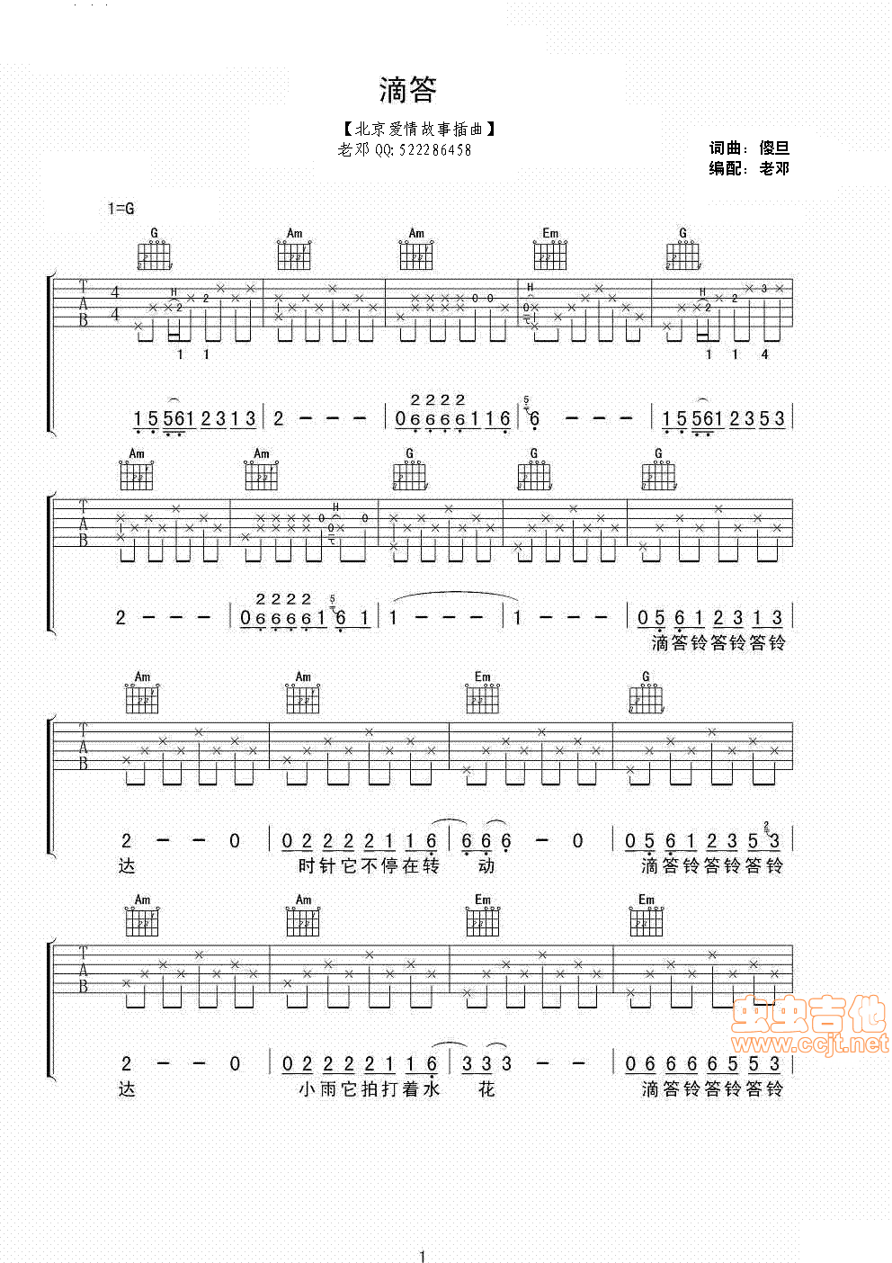 滴答吉他谱 - 吉他弹唱谱