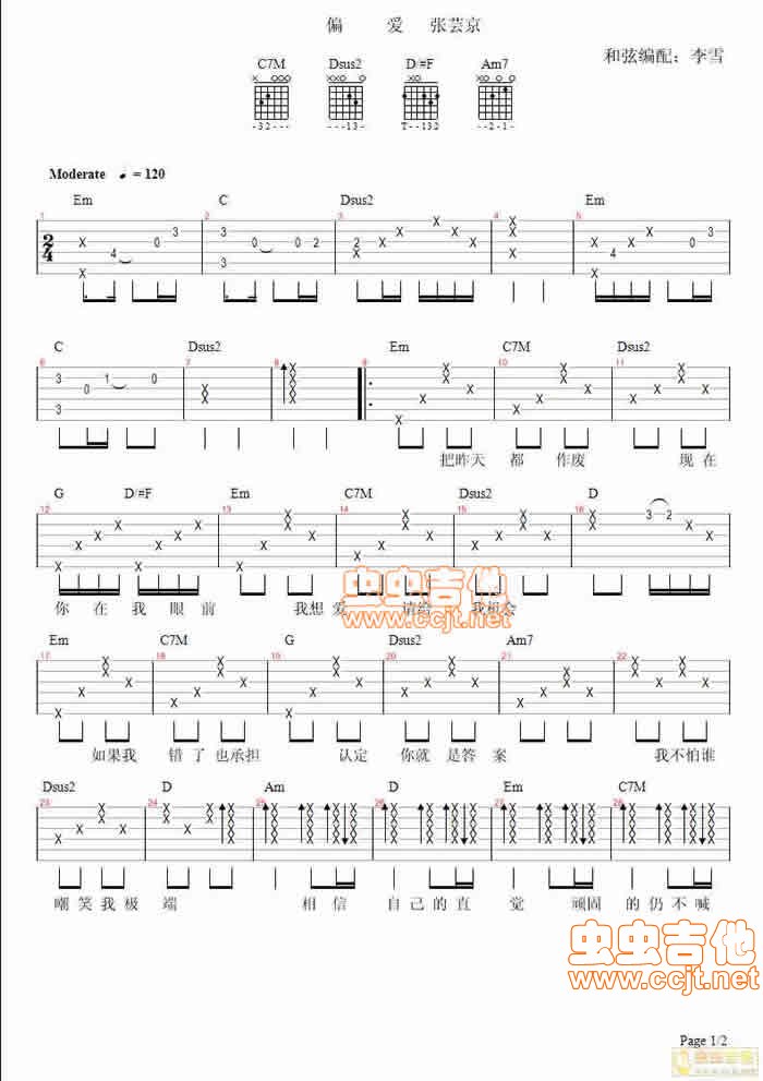 偏爱2 张芸京 基本原版吉他谱 - 偏爱2 - 吉他弹唱谱 - 原版
