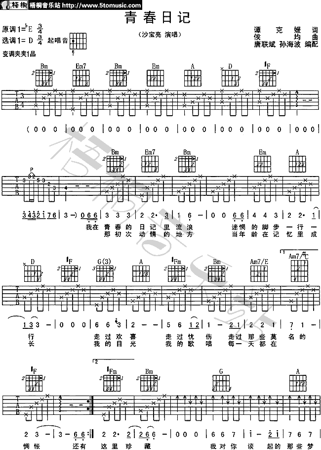 青春日记吉他谱 - 吉他弹唱谱