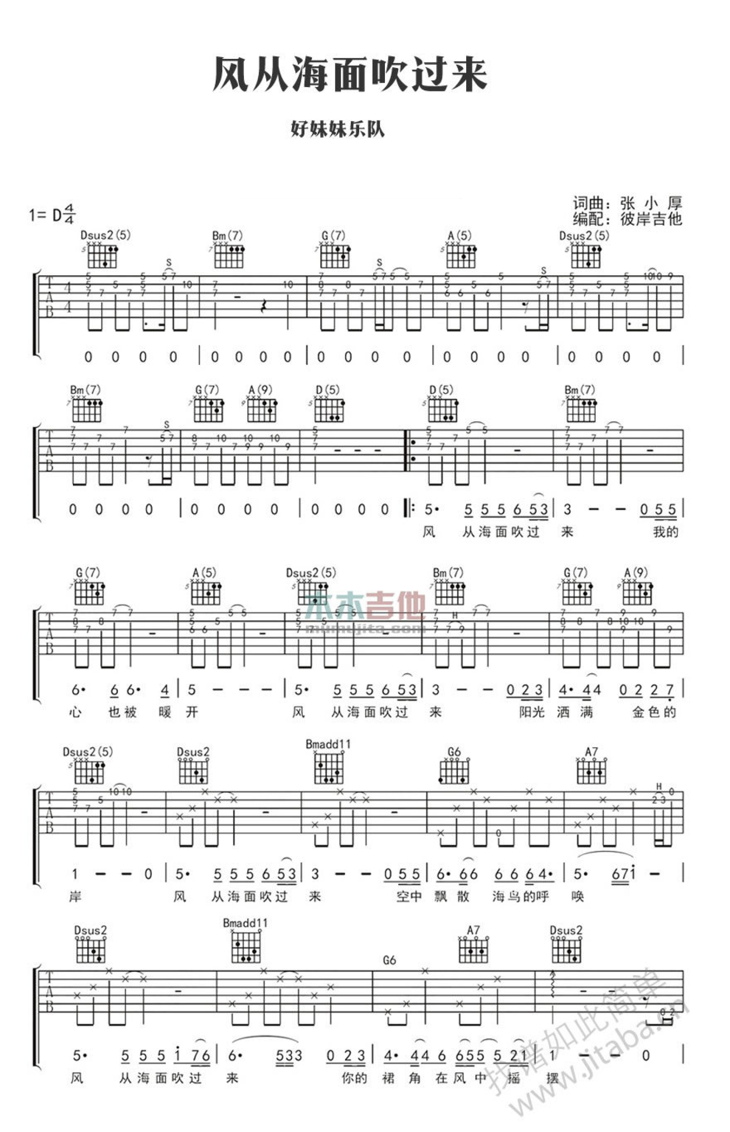 风从海面吹过来吉他谱 - 好妹妹乐队 - D调吉他弹唱谱