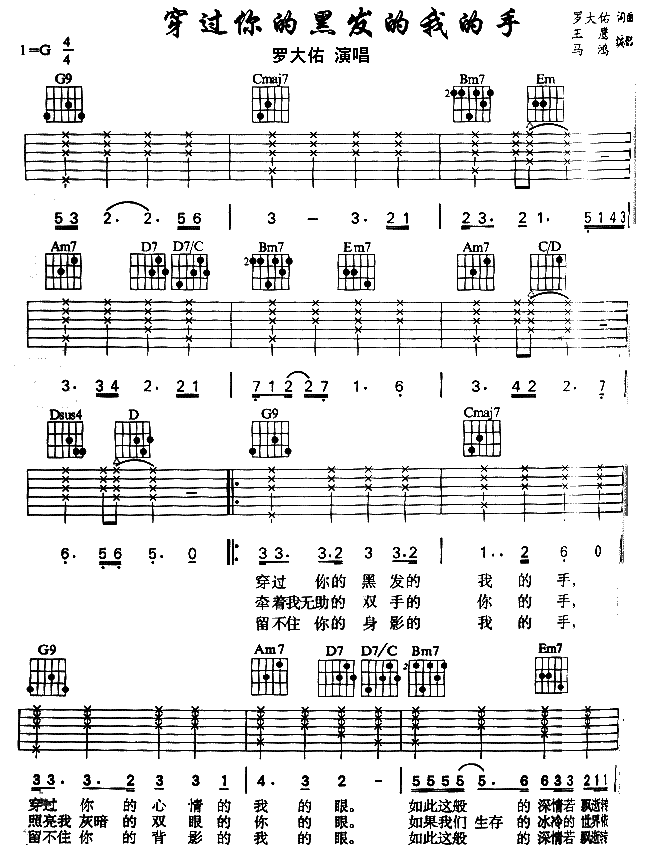 穿过你的黑发的我的手吉他谱 - 吉他弹唱谱