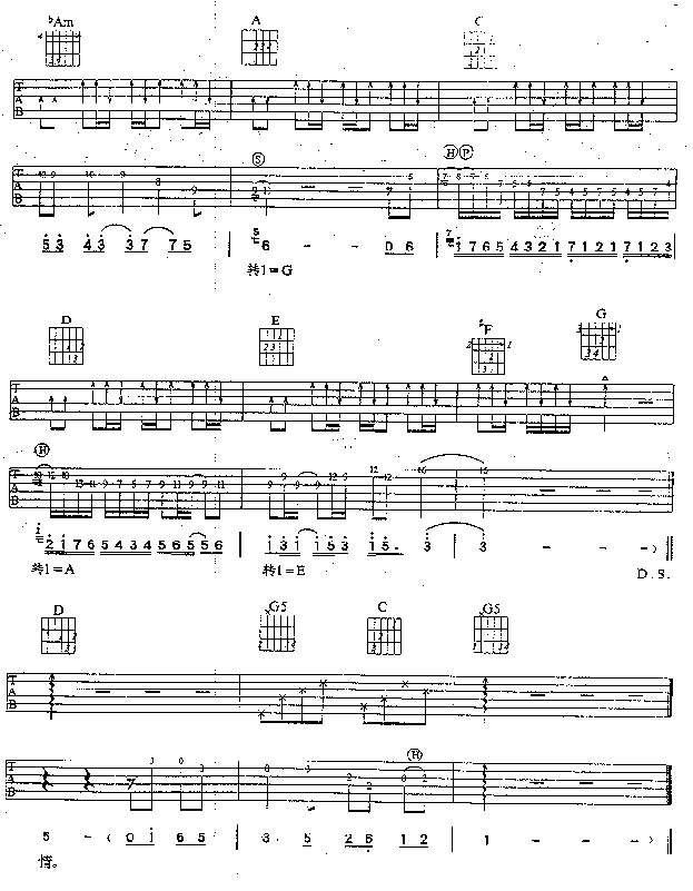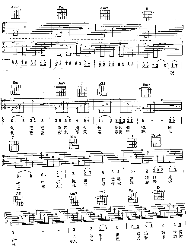 曲谱介绍: 《明月千里寄相思》吉他弹唱谱,共有5张高清图谱。