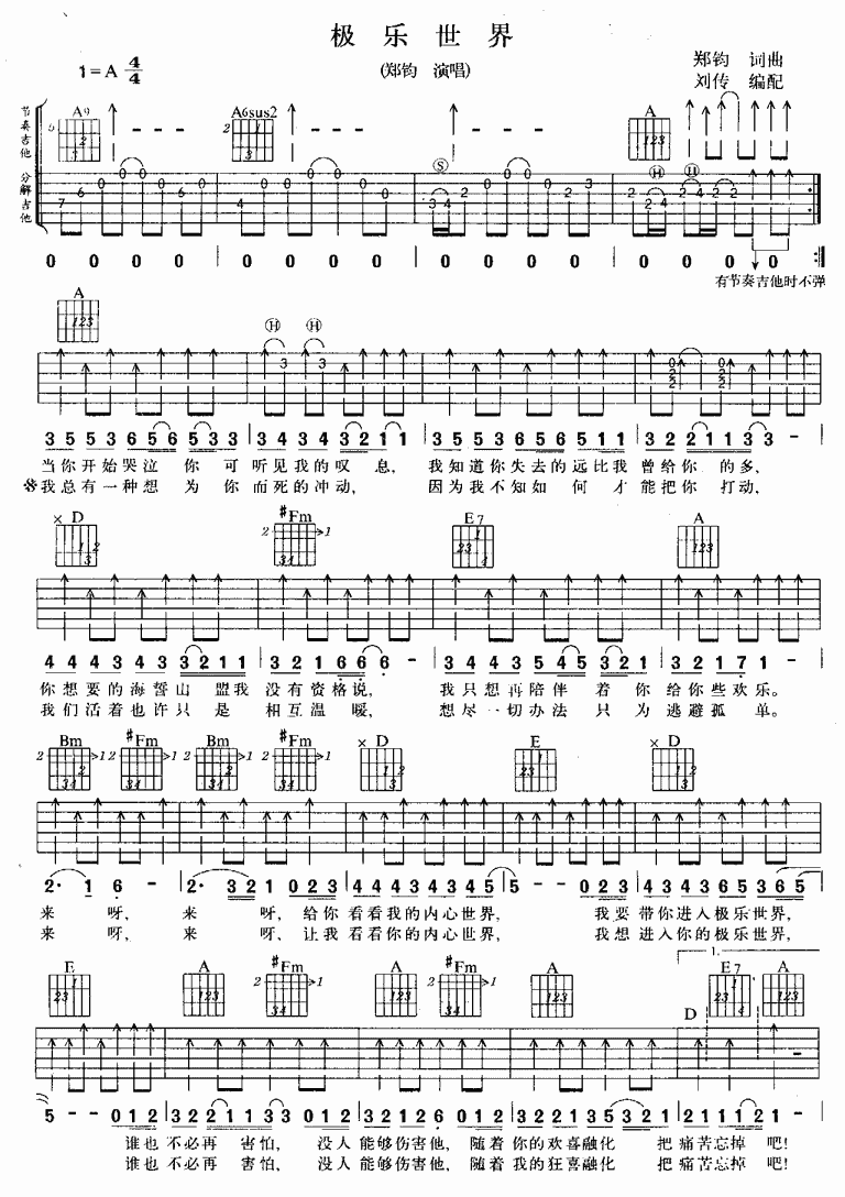 曲谱介绍: 《极乐世界》吉他弹唱谱,共有2张高清图谱,免翻页排版设计。