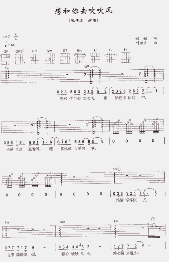 当前位置:琴谱网>吉他弹唱>想和你去吹吹风