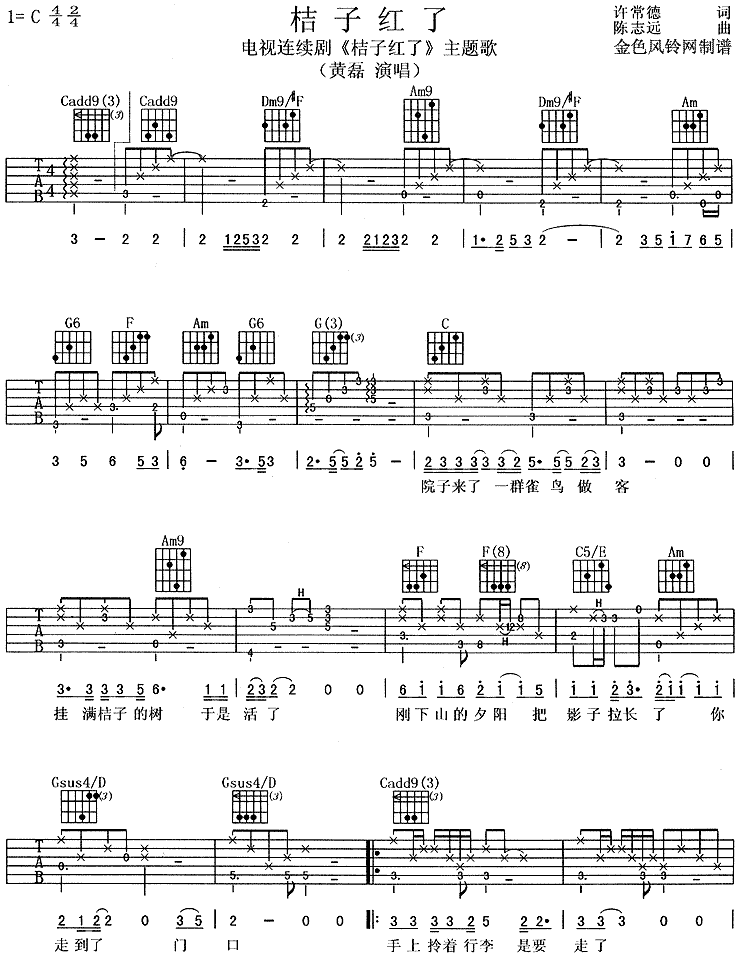 当前位置:琴谱网>吉他弹唱>桔子红了