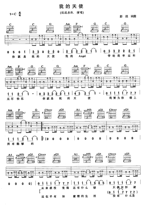 曲谱介绍: 《我的天使》吉他弹唱谱,共有4张高清图谱。