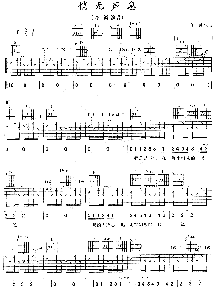 情无声息吉他谱 - 吉他弹唱谱