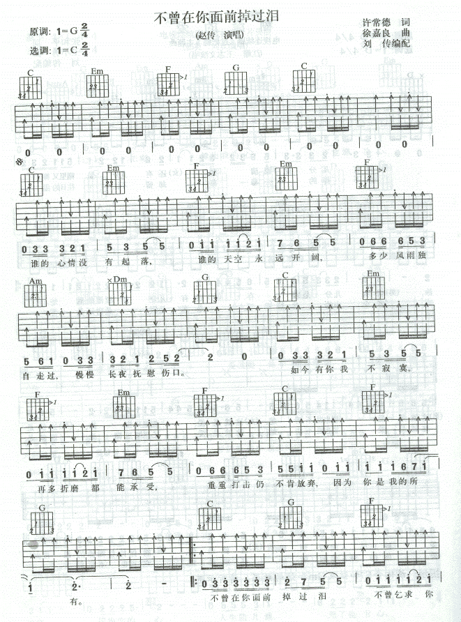 不曾在你面前掉过泪吉他谱 - 不曾在你面前掉过泪 - 吉他弹唱谱