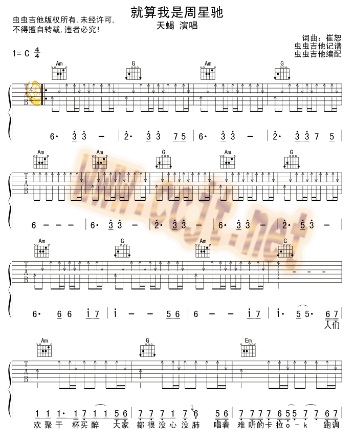 就算我是周星驰吉他谱 - 吉他弹唱谱