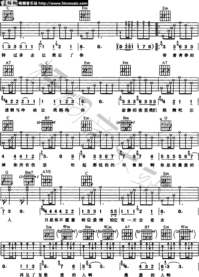 当前位置:琴谱网>吉他弹唱>再见了,最爱的人