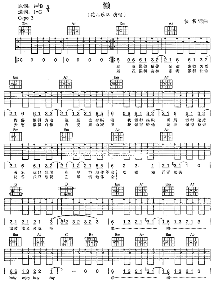 懒吉他谱 - 吉他弹唱谱