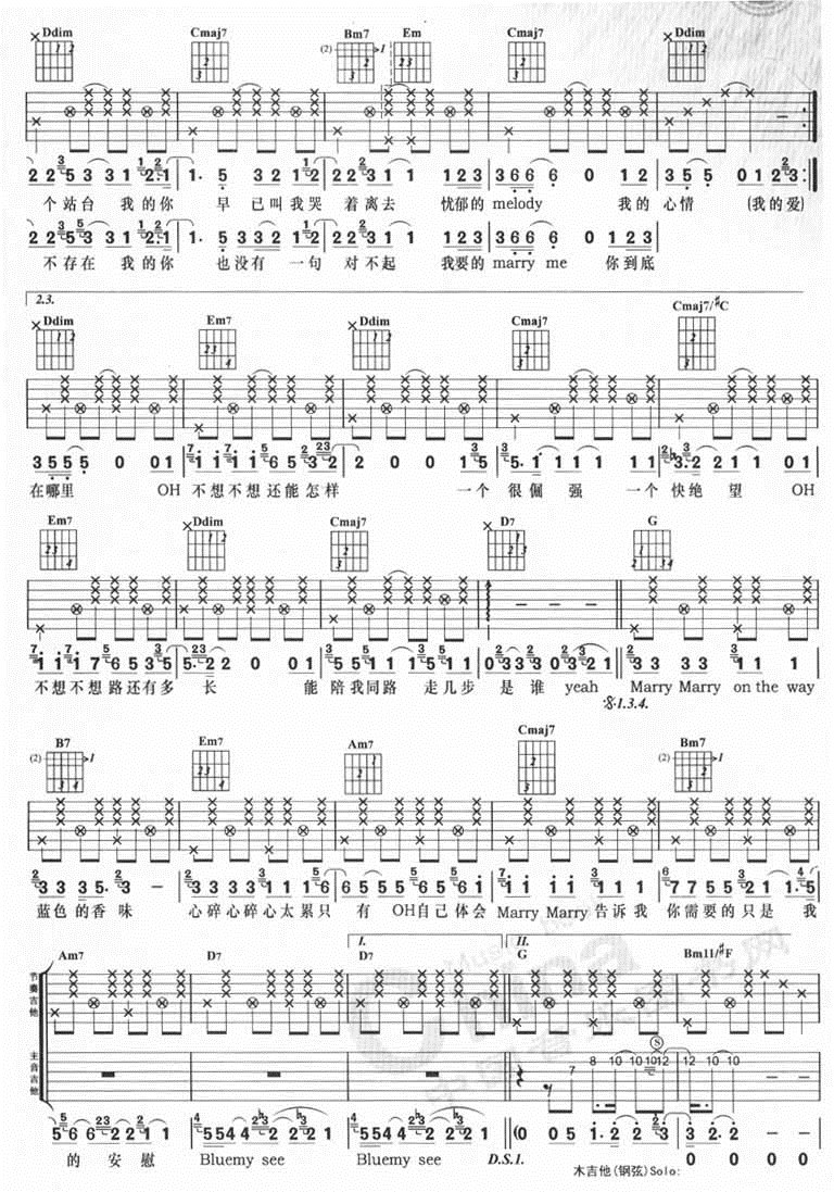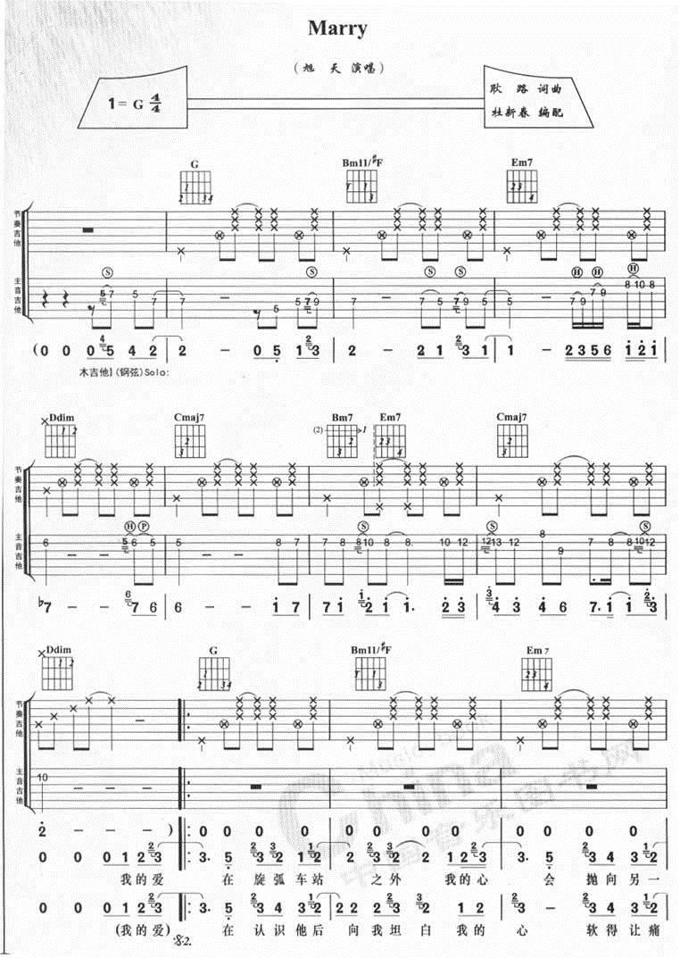 曲谱介绍: 《Marry》吉他弹唱谱,共有3张高清图谱。