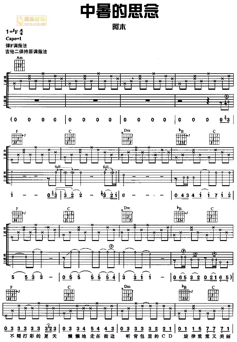 中暑的思念吉他谱 - 吉他弹唱谱