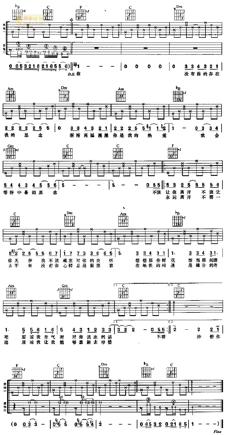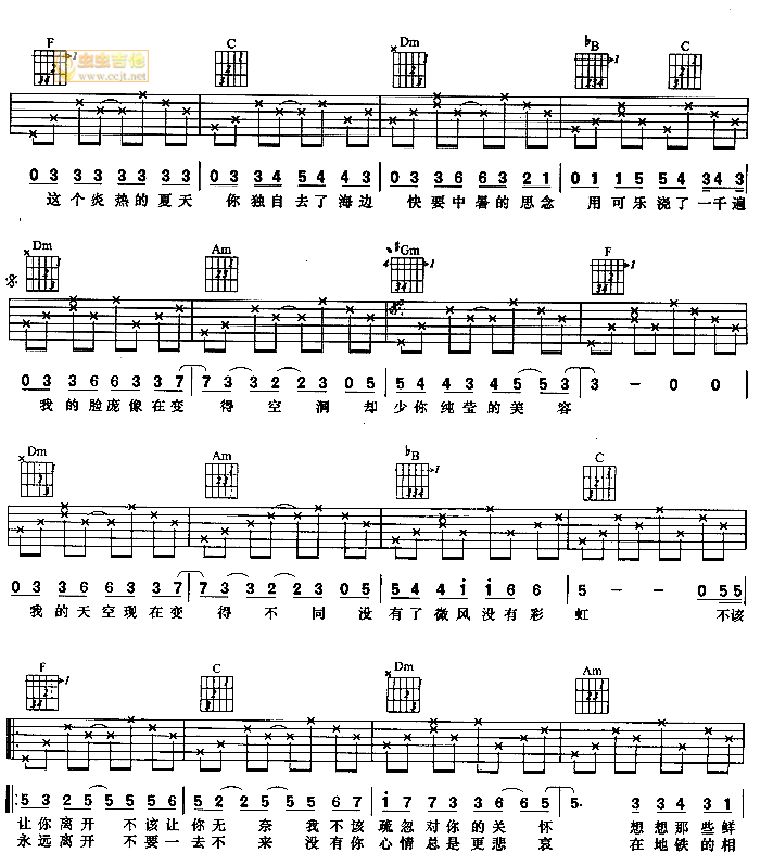 当前位置:琴谱网>吉他弹唱>中暑的思念