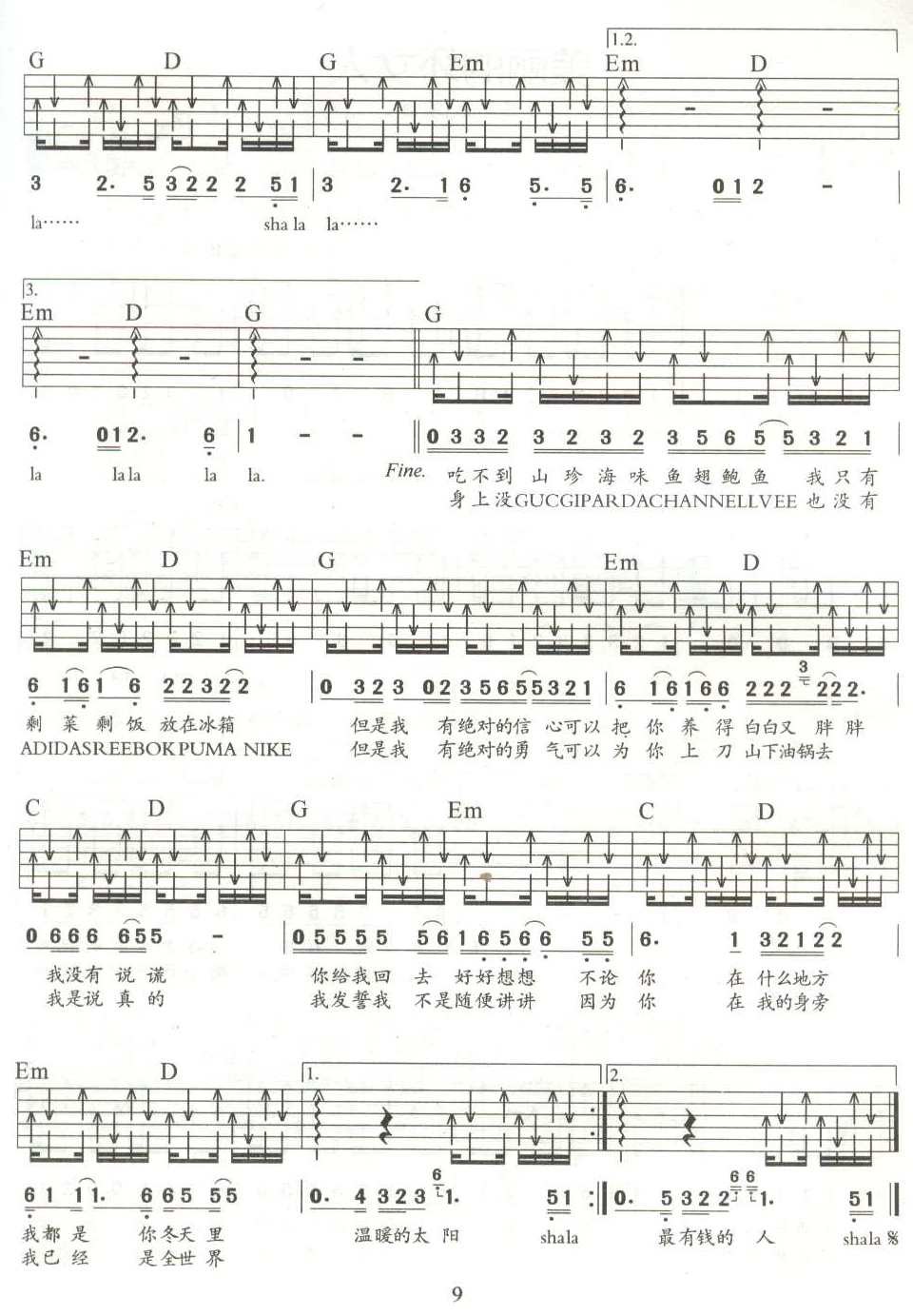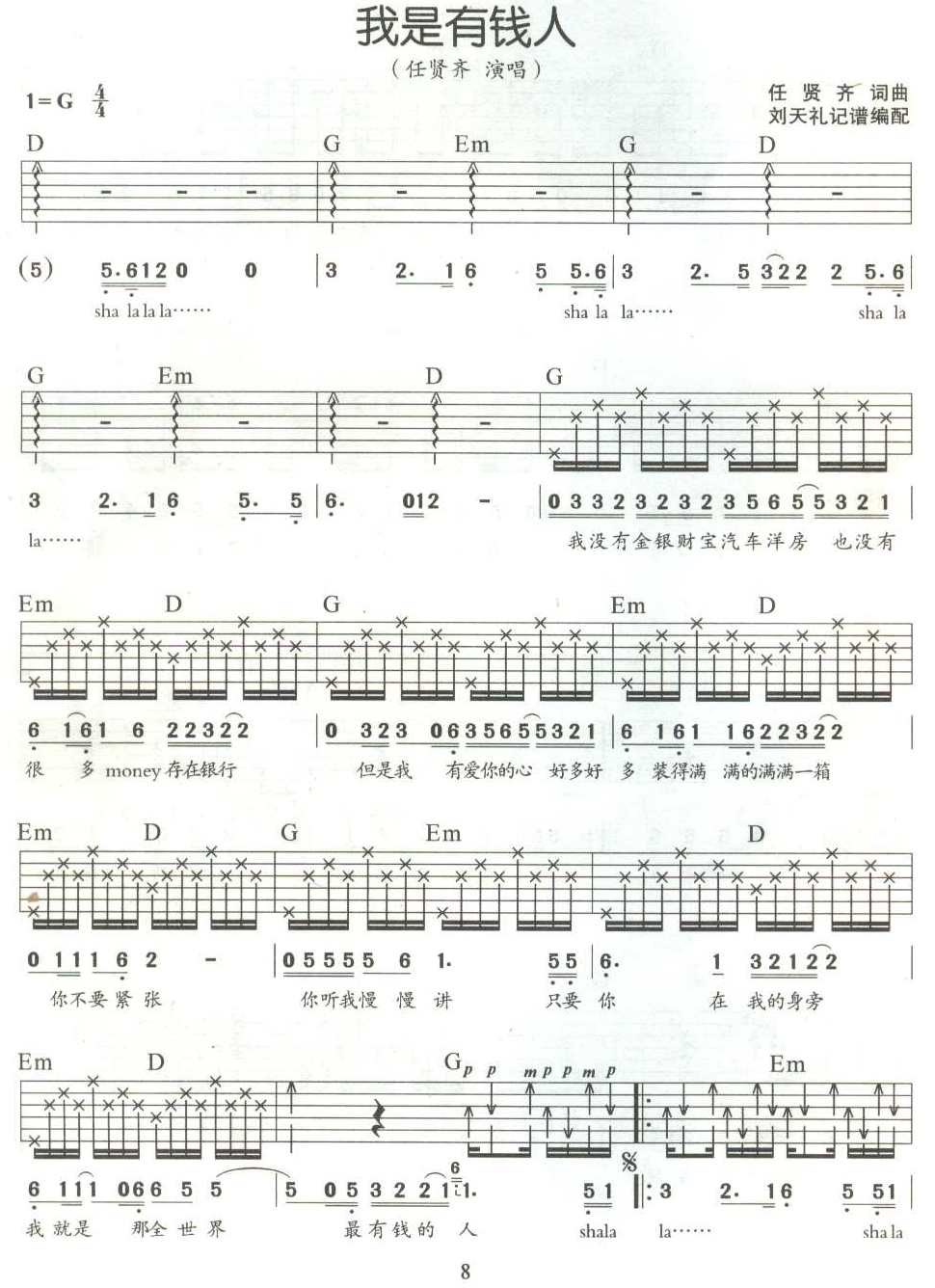 当前位置:琴谱网>吉他弹唱>我是有钱人