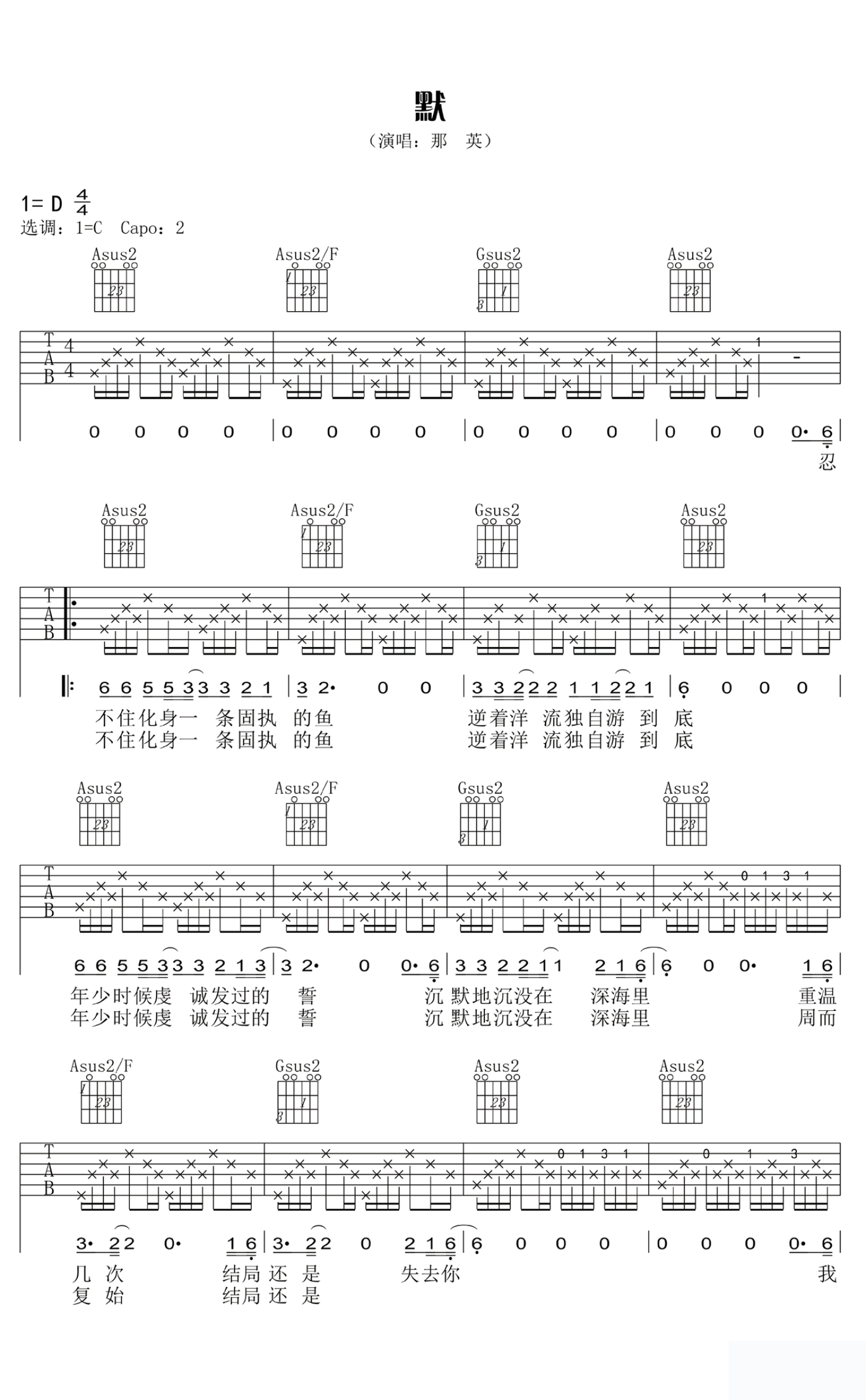 默吉他谱 - 那英 - C调吉他弹唱谱