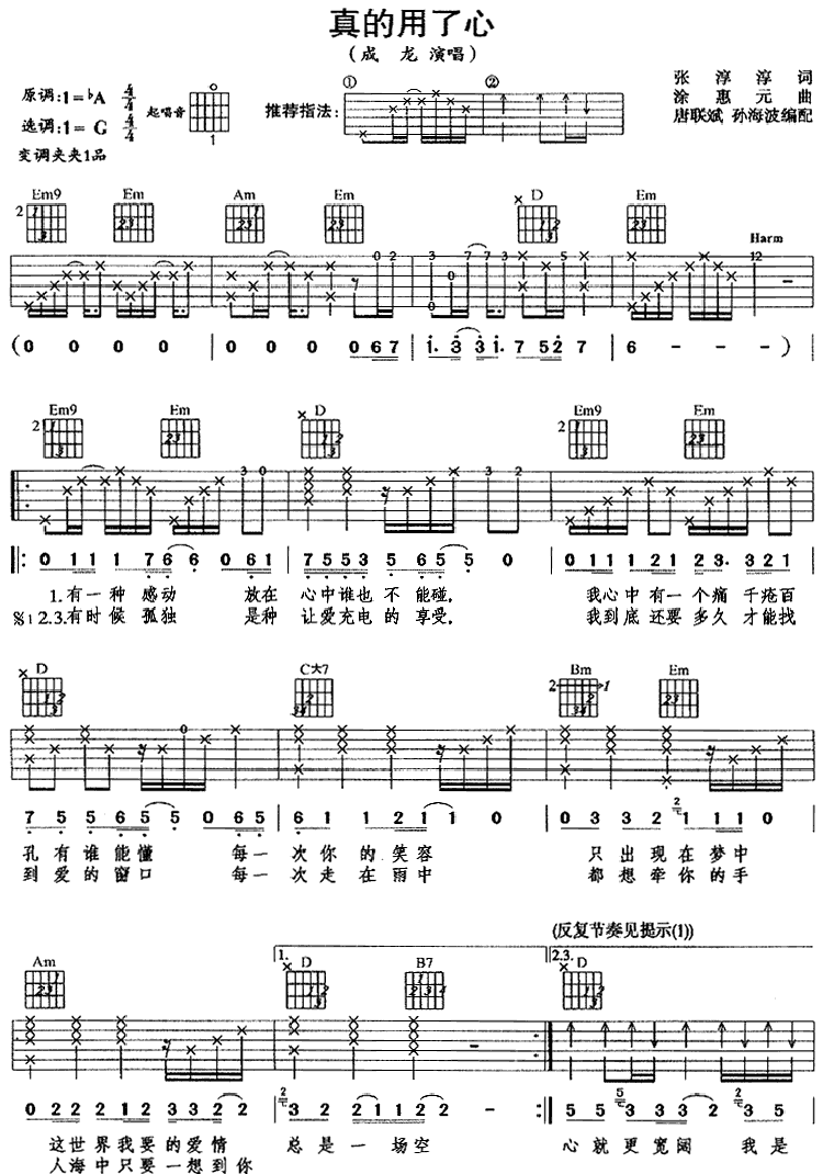 当前位置:琴谱网>吉他弹唱>真的用了心
