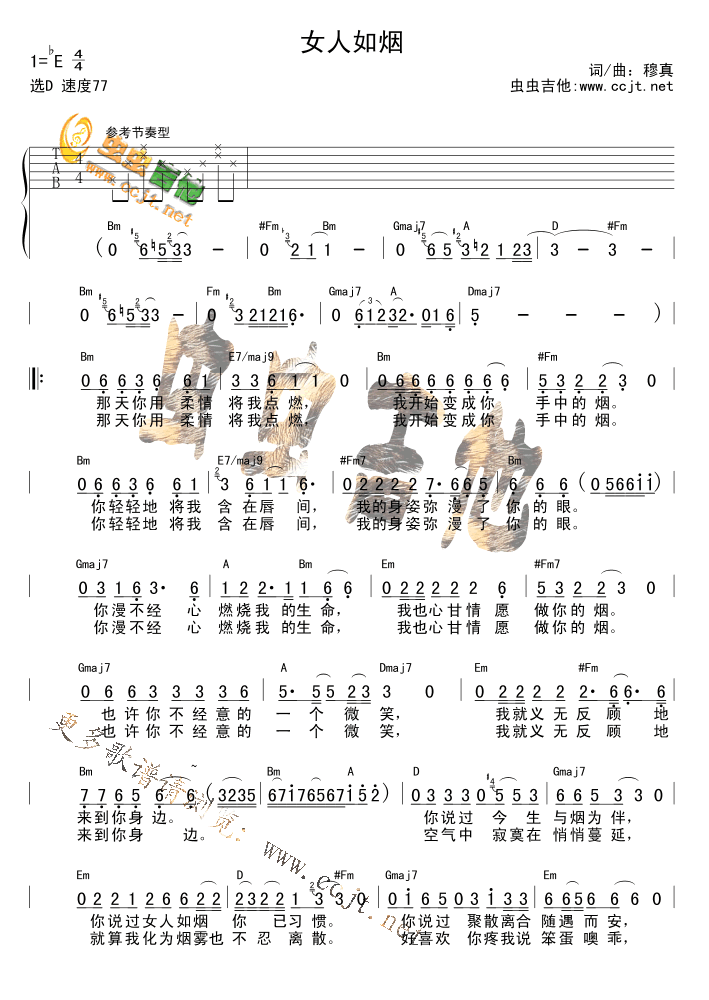 当前位置:琴谱网>吉他弹唱>女人如烟