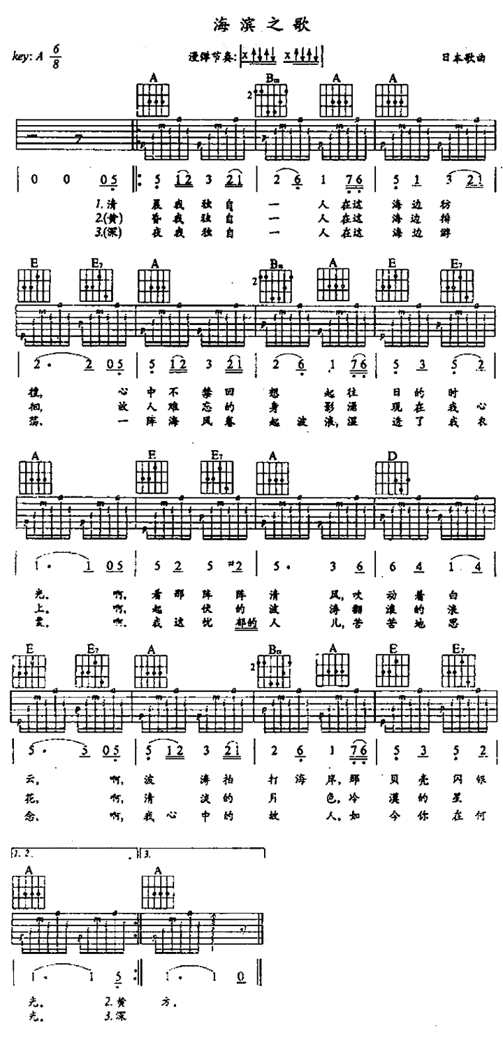 海滨之歌吉他谱 - 吉他弹唱谱