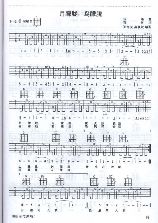 当前位置:琴谱网>吉他弹唱>月朦胧鸟朦胧