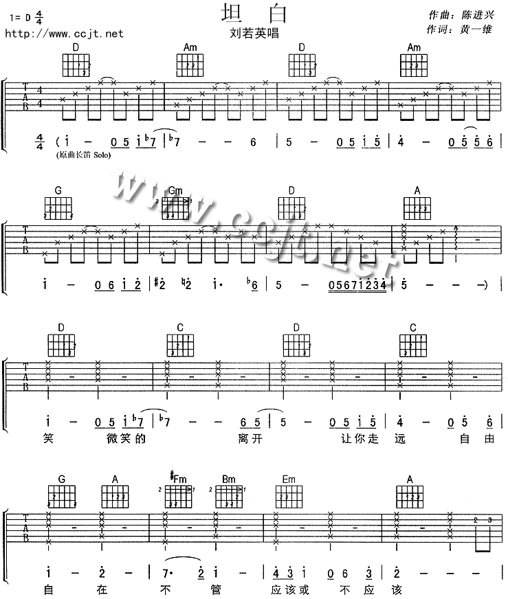 坦白吉他谱 - 吉他弹唱谱