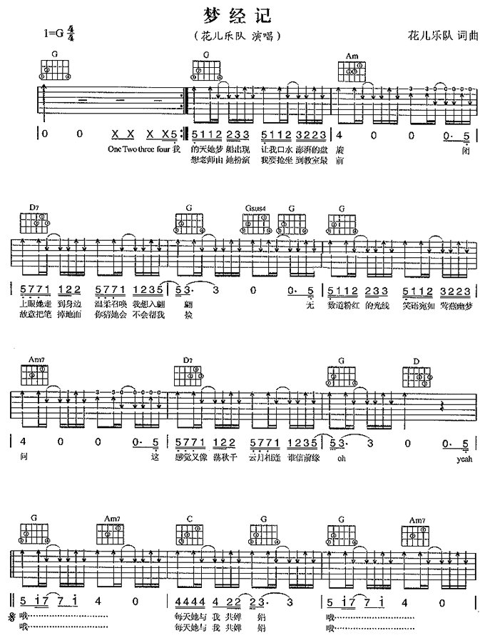 曲谱介绍: 《梦经记》吉他弹唱谱,共有2张高清图谱,免翻页排版设计。