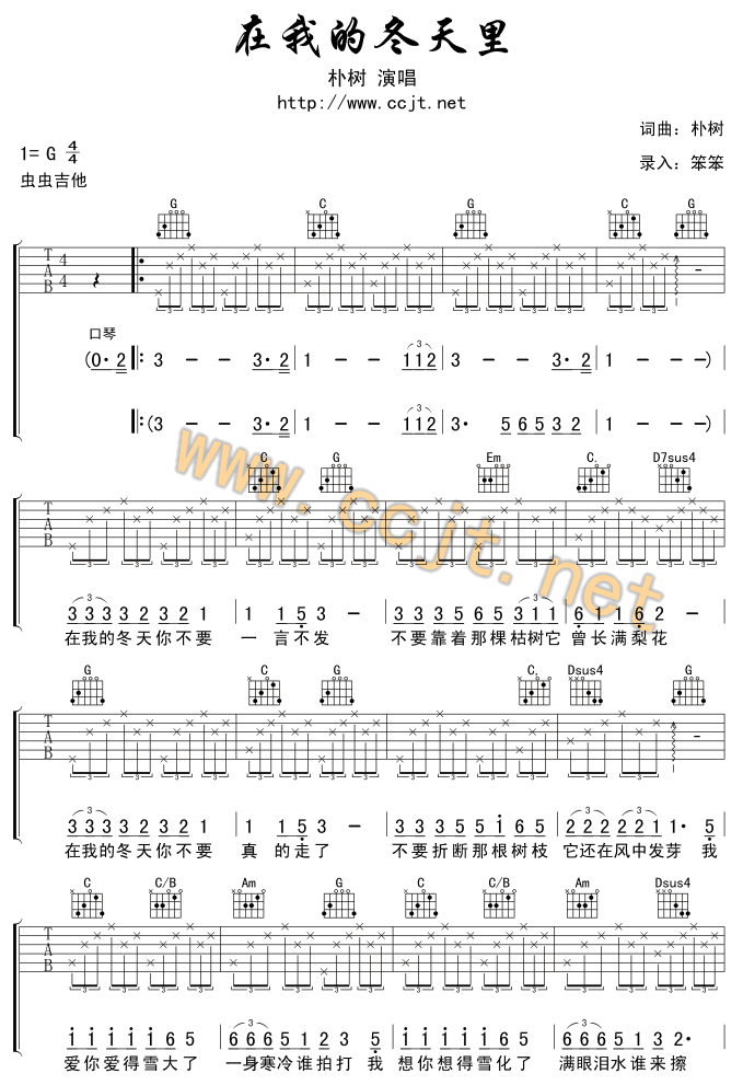 在我的冬天里吉他谱 - 吉他弹唱谱