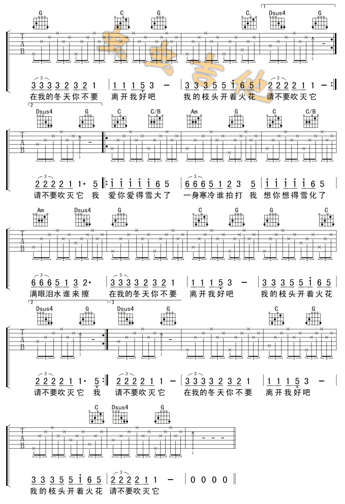 曲谱介绍: 《在我的冬天里》吉他弹唱谱,共有2张高清图谱,免翻页排版设计。