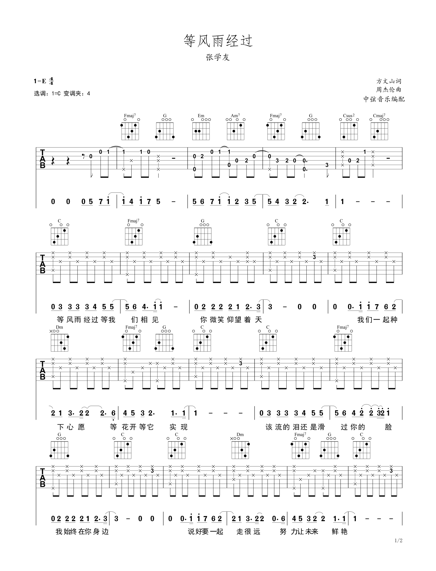 • 等风雨经过吉他谱 - 张学友 - C调吉他弹唱谱第1张