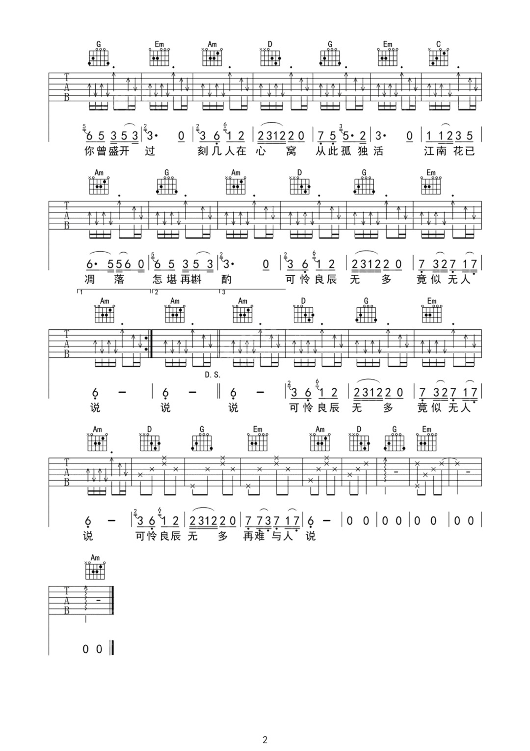 曲谱介绍: 吉他谱介绍:人间烟火吉他谱,程响演唱的一首歌曲,2/4拍的节奏,这首歌曲的原调为降E调,这里曲谱采用了C调指法进行编配,演唱时夹变调夹3品可回到原调,也可根据个人实际嗓音情况选择。曲谱由琴谱网更新上传,共2张高清图片弹唱吉他谱例,曲谱来源于网络转载,编配制谱者暂不详。一首旋律优美的古风歌曲,程响的音色听起来跟王菲有些相似,或许都是被天使吻过的歌喉,声似天籁,令人着迷,向往。