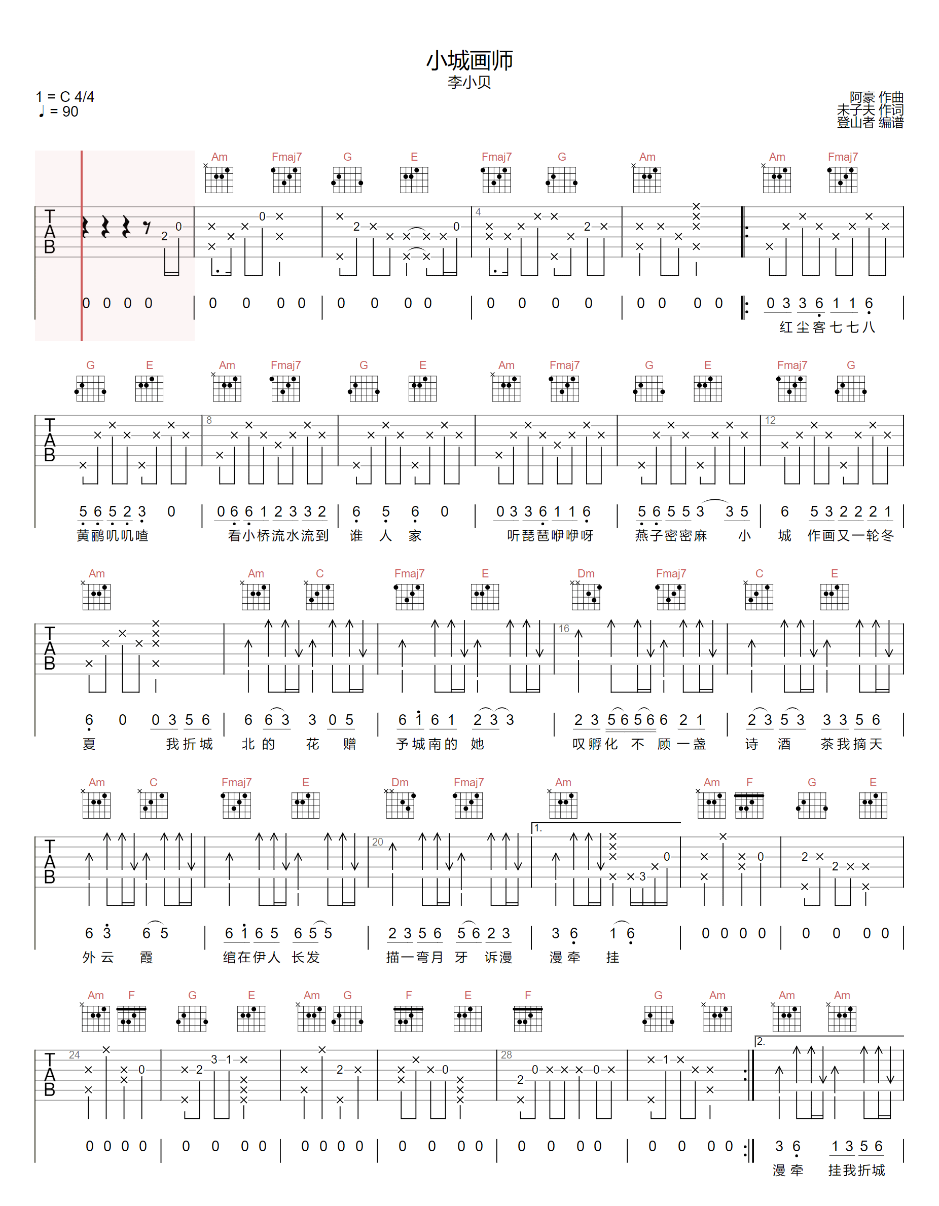 小城画师吉他谱 - 李小贝 - C调吉他弹唱谱 - 原版