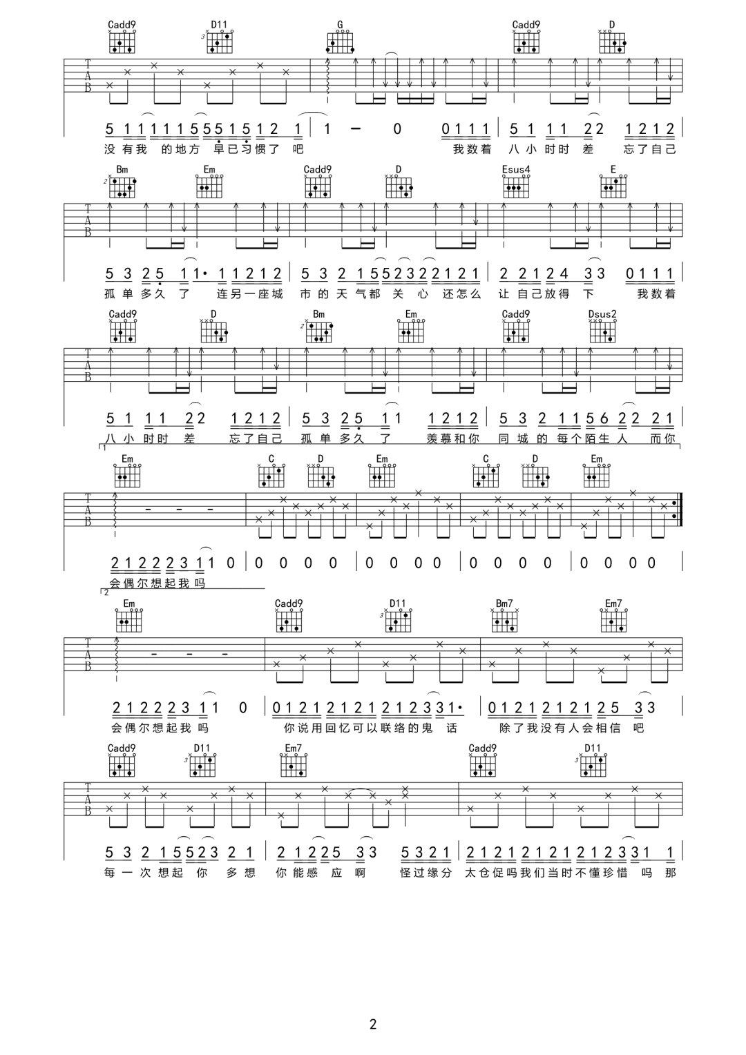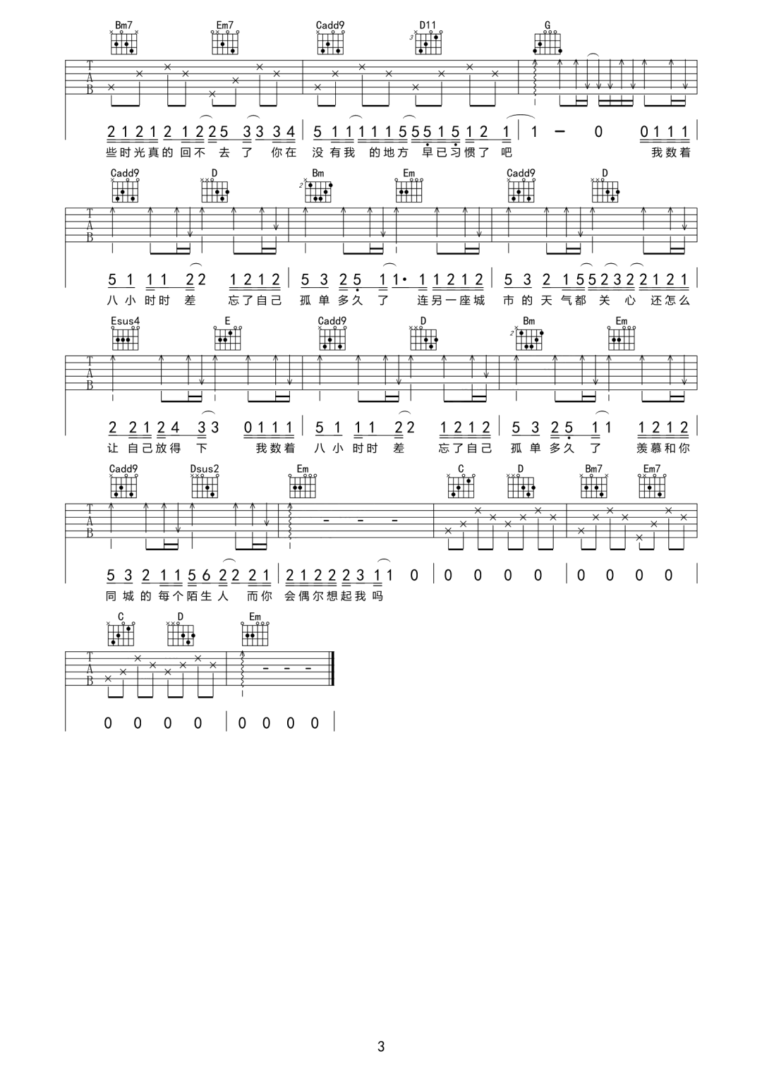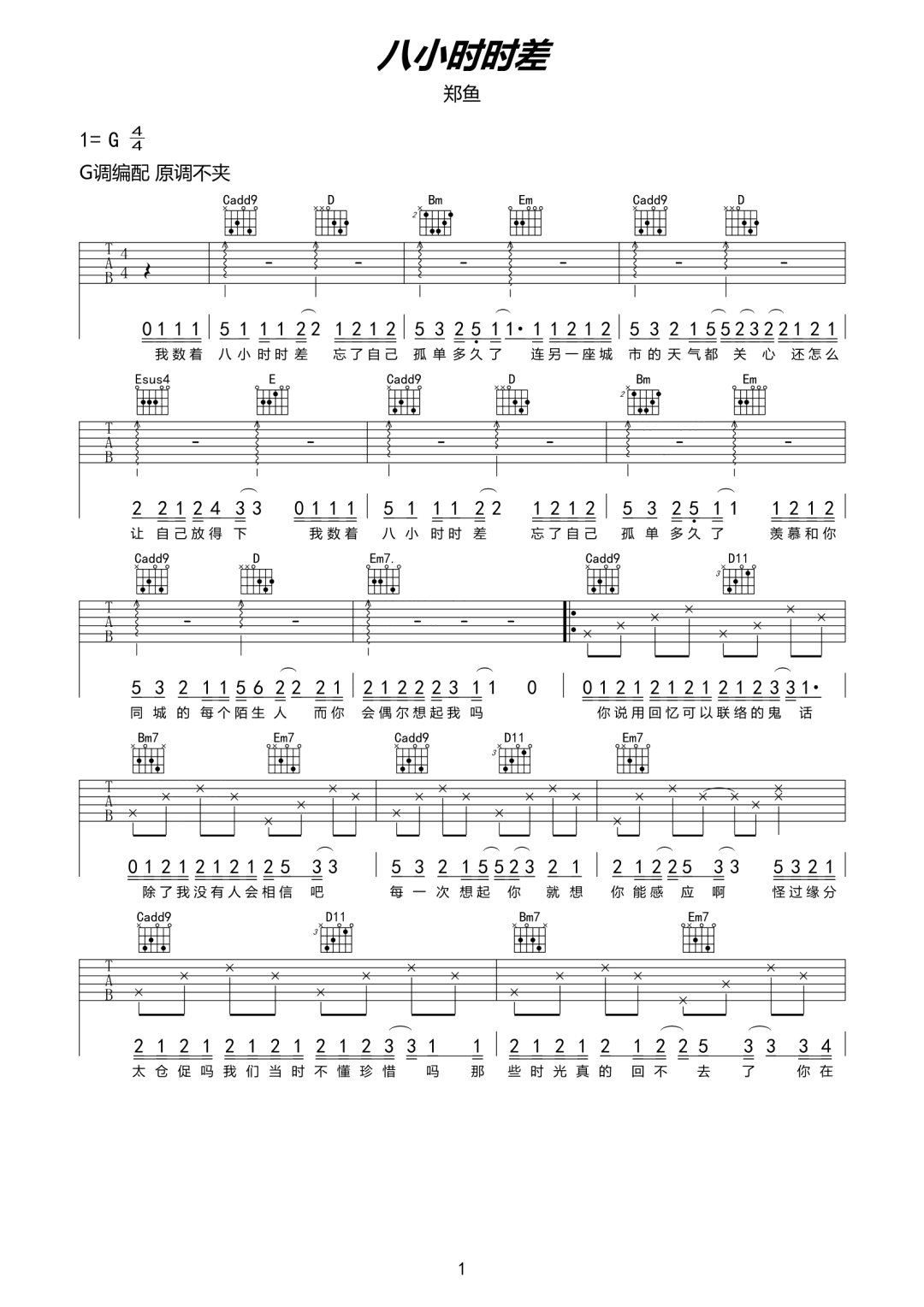 八小时时差吉他谱 - 郑鱼 - G调吉他弹唱谱 - 原版