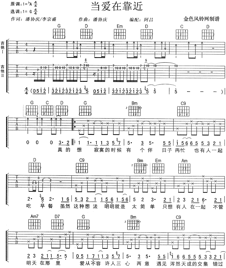 当前位置:琴谱网>吉他弹唱>当爱在靠近(图片)