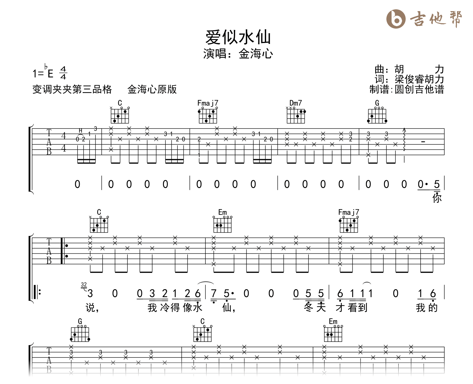 爱似水仙吉他谱 - 金海心 - C调吉他弹唱谱 - 原版