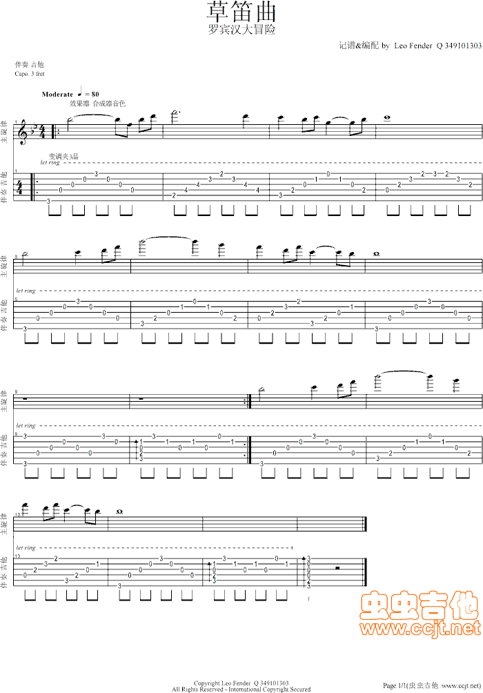 草笛曲 from 罗宾汉大冒险吉他谱 - 草笛曲 - 吉他弹唱谱