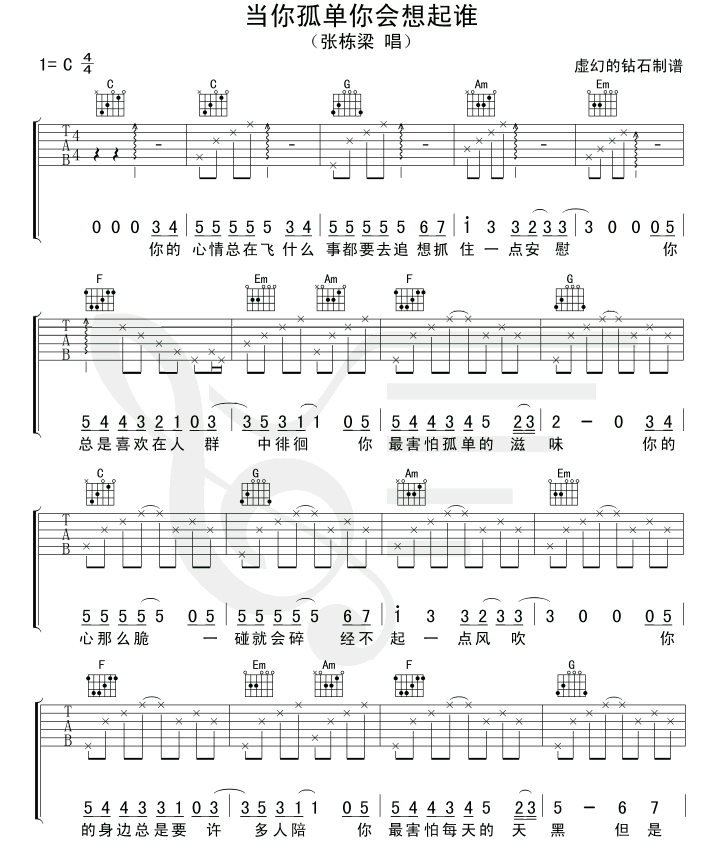 当你孤单你会想起谁吉他谱 - 吉他弹唱谱